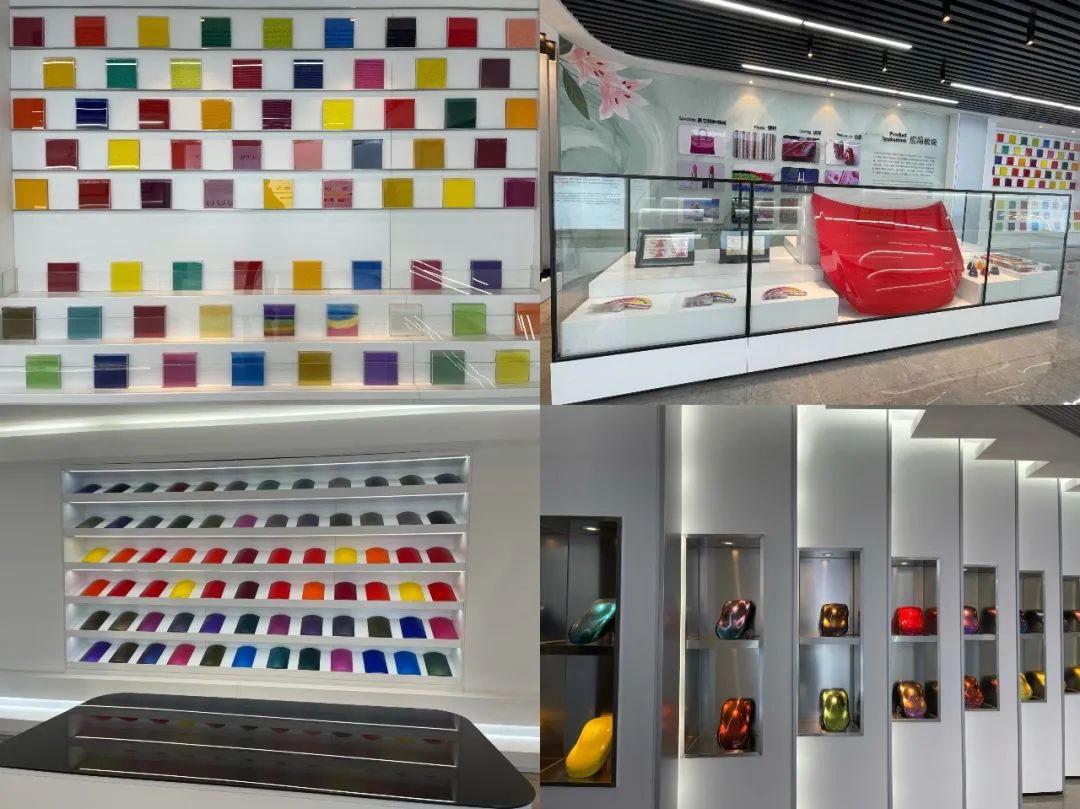 在展厅的中央,产品及应用实物展示区表现了企业生产的部分产品及应用领域,背景墙上的亚星官网花图案也与亚星官网相呼应。产品展示区放置了亚星官网花各个规格的颜料产品,可以让参观人员零距离的感受颜料的品质。产品应用区展示了亚星官网花颜料在油墨、涂料、塑料以及皮革、化妆品、液晶电子等特种领域的广泛应用。在油墨领域,公司为人民币的着色和防伪提供相应产品。在涂料领域,公司产品适用于各类高端汽车漆等各种涂料产品。其中,公司在南浦大桥的建设主体用色中赚取了第一桶金,这为公司未来的快速发展奠定了一定的基础。在塑料领域,公司提供低芳香胺以及无重金属的环保颜料,解决了塑料应用中的安全环保问题。在其他特种领域,我们可以看到闪闪发亮的珠光颜料在化妆品领域的应用。
